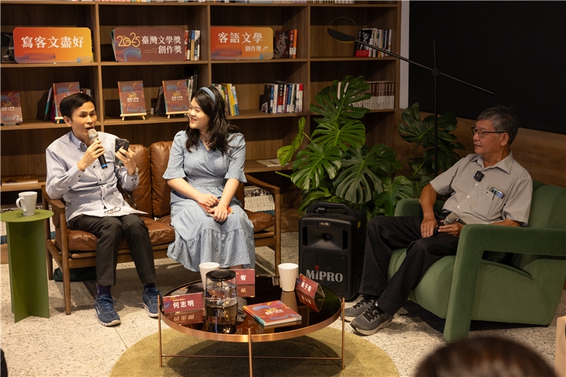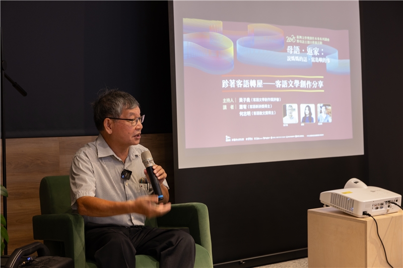 9月14日午後,在儲備文學資糧與動能的臺灣文學糧倉舉行了「客語文學創作」分享講座,由2025年臺灣文學獎客語文學創作獎新詩獎得主蕭宥與散文獎得主何志明擔任講者,並邀請客語文學創作獎評審黃子堯老師主持及與談,當日具有詔安客家淵源、知名的日本語文學研究者林水福教授也特別出席與會。