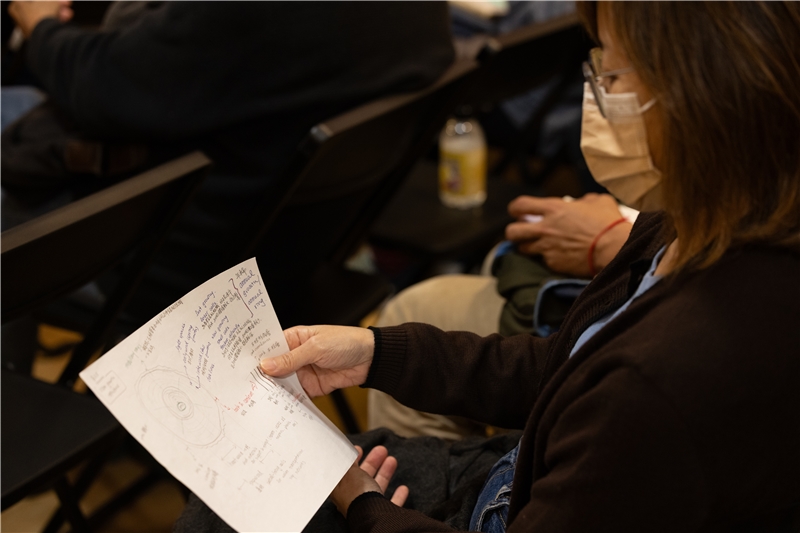 呈現在書中別具風格的插畫,也有一番轉折。藍永翔與聽眾分享原本想用作插圖的「手繪筆記圖」,上面羅列著中英夾雜的植物資訊,她說編輯看完之後直接婉拒,認為不利於讀者理解。還好後來很幸運地找到熟悉其「野」性研究風格的學姐執筆,經過大量討論與爭辯,不斷地在科學精確度、美感與資訊量之間拉扯,最終定調為「野外筆記」風格——帶著手繪線條、簡要標示與註解,而非過度精細的圖像,以呈現研究者走進森林現場、即時觀察與記錄的狀態。
