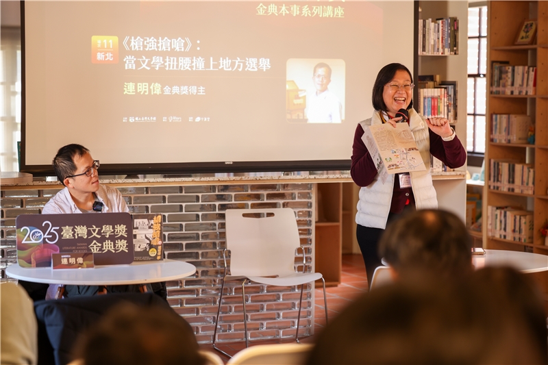 2025金典本事系列講座第11場,1月24日午後在五股守讓堂舉行,也是本系列的最終場,由小說家連明偉分享得獎作品《槍強搶嗆》的故事。在這部長篇小說中,連明偉藉由一場鎮長選舉,書寫地方政治文化。他表示,今年適逢選舉,而小說背景正是從地方選舉開始,此時談論,似乎也別具意義。